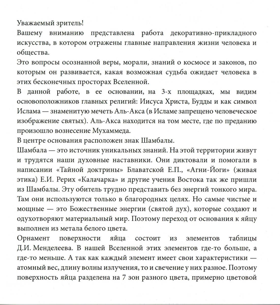 Уважаемые читатели. Хочу поделиться с Вами великолепной работой ведущего русского мастера - ювелира Леонида Федоровича Шашкова, который при всех своих множественных званиях является не только истинным профессионалом в своем деле, но и высоким ценителем эзотерических знаний, что и пытается отразить в некоторых своих работах. Для меня великая честь оказаться в одном ряду с такими духовными Учителями человечества, как: Платон, Махатма Кут-Хуми, Махатма Мория, Е.П.Блаватская, Р.Штайнер, Е.И.Рерих.